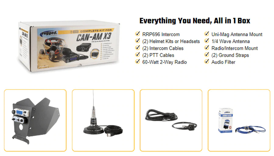 Talk between passengers, communicate with other vehicles, listen to music and make phone calls - our complete communication kits do it all! This kit features a custom top-mounting solution that perfectly fits your UTV.